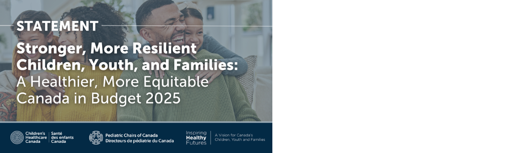 In our pre-budget submission, Children’s Healthcare Canada and the Pediatric Chairs of Canada recommended four targeted investments in Budget 2025 that would significantly improve health outcomes for children and youth across Canada.