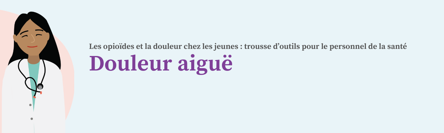 Souvent, une blessure ou une maladie s’accompagne d’une douleur aiguë chez l’enfant. Lorsqu’un enfant ou un jeune ressent une douleur aiguë, cette douleur devrait d’abord être gérée au moyen de stratégies physiques et psychologiques, auxquelles s’ajoute une analgésie non opioïde lorsque possible.