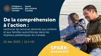 Joignez-vous à nous pour un webinaire captivant axé sur l'amélioration des expériences en matière de soins de santé pour les enfants et les familles autochtones dans les hôpitaux pour enfants canadiens. Cette séance permettra de partager les conclusions d'une analyse environnementale financée par les IRSC sur les services et programmes de santé axés sur les Autochtones offerts dans les hôpitaux pour enfants à travers le pays. Découvrez les lacunes et les possibilités qui existent en matière de personnel et d'espaces autochtones, de collecte de données, d'éducation à la sécurité culturelle et d'approches stratégiques. Découvrez le parcours et les réussites de certaines institutions en matière de pratiques de purification par la fumée et de programmes d'orientation autochtones.